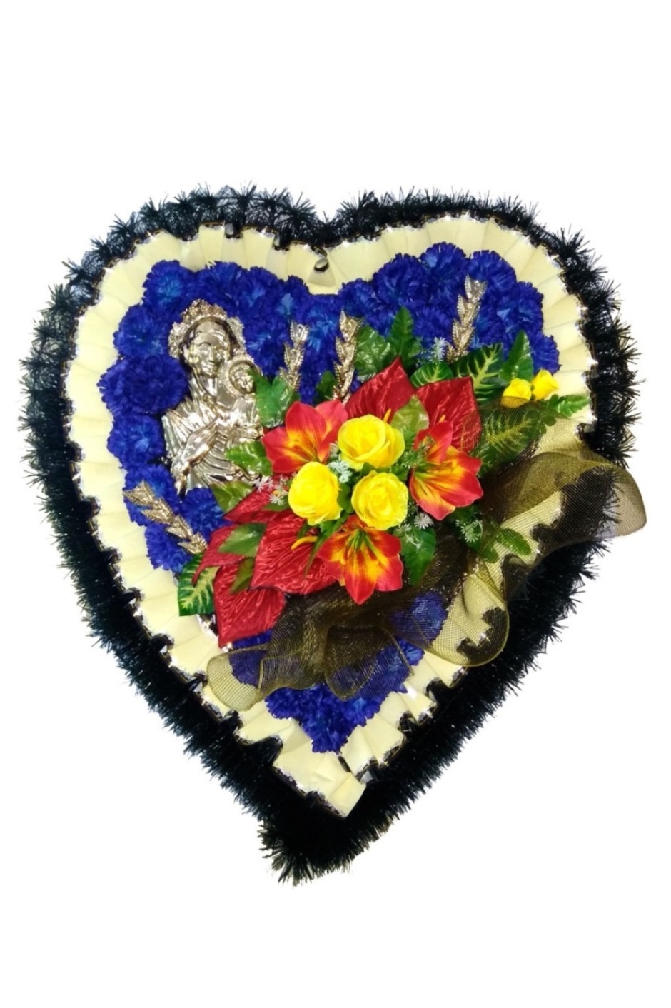 Produsul dat este confecționat din carcas metalic, brad sau pin artificial, flori artificiale, lentă, decor.