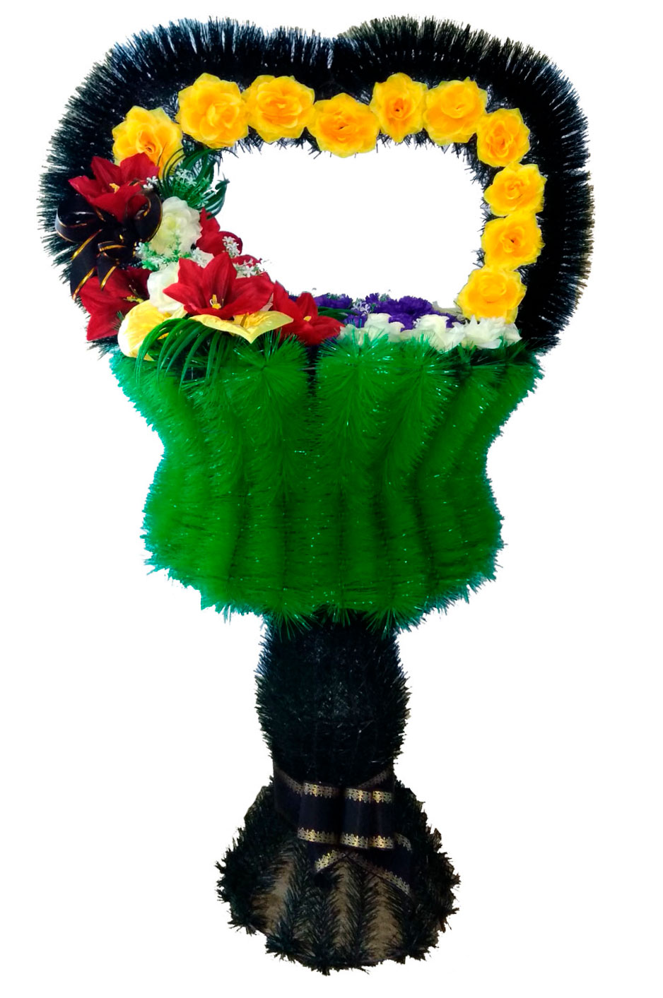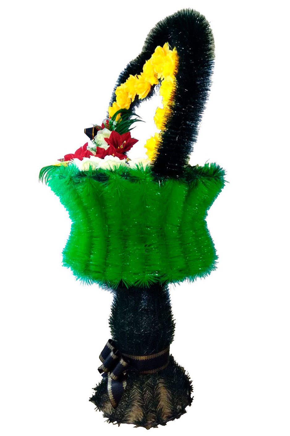 Produsul dat este confecționat din carcas metalic, brad sau pin artificial, flori artificiale, lentă, decor.