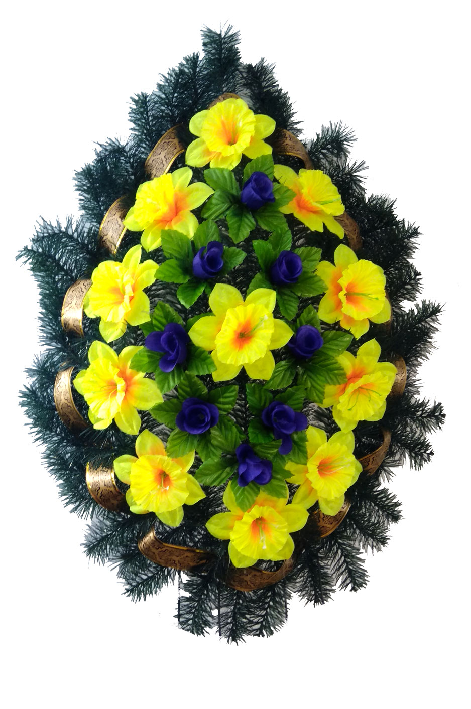 Produsul dat este confecționat din carcas metalic, brad sau pin artificial, flori artificiale, lentă, decor.