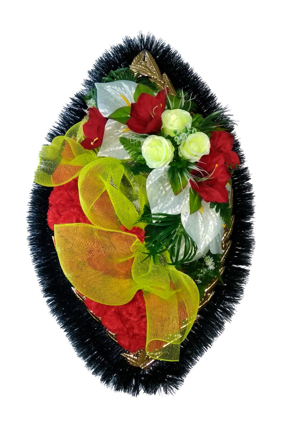 Produsul dat este confecționat din carcas metalic, brad sau pin artificial, flori artificiale, lentă, decor.