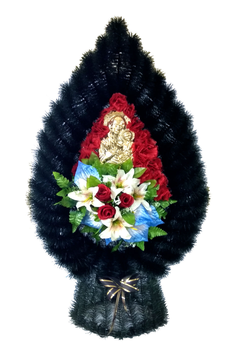 Produsul dat este confecționat din carcas metalic, brad sau pin artificial, flori artificiale, lentă, decor.