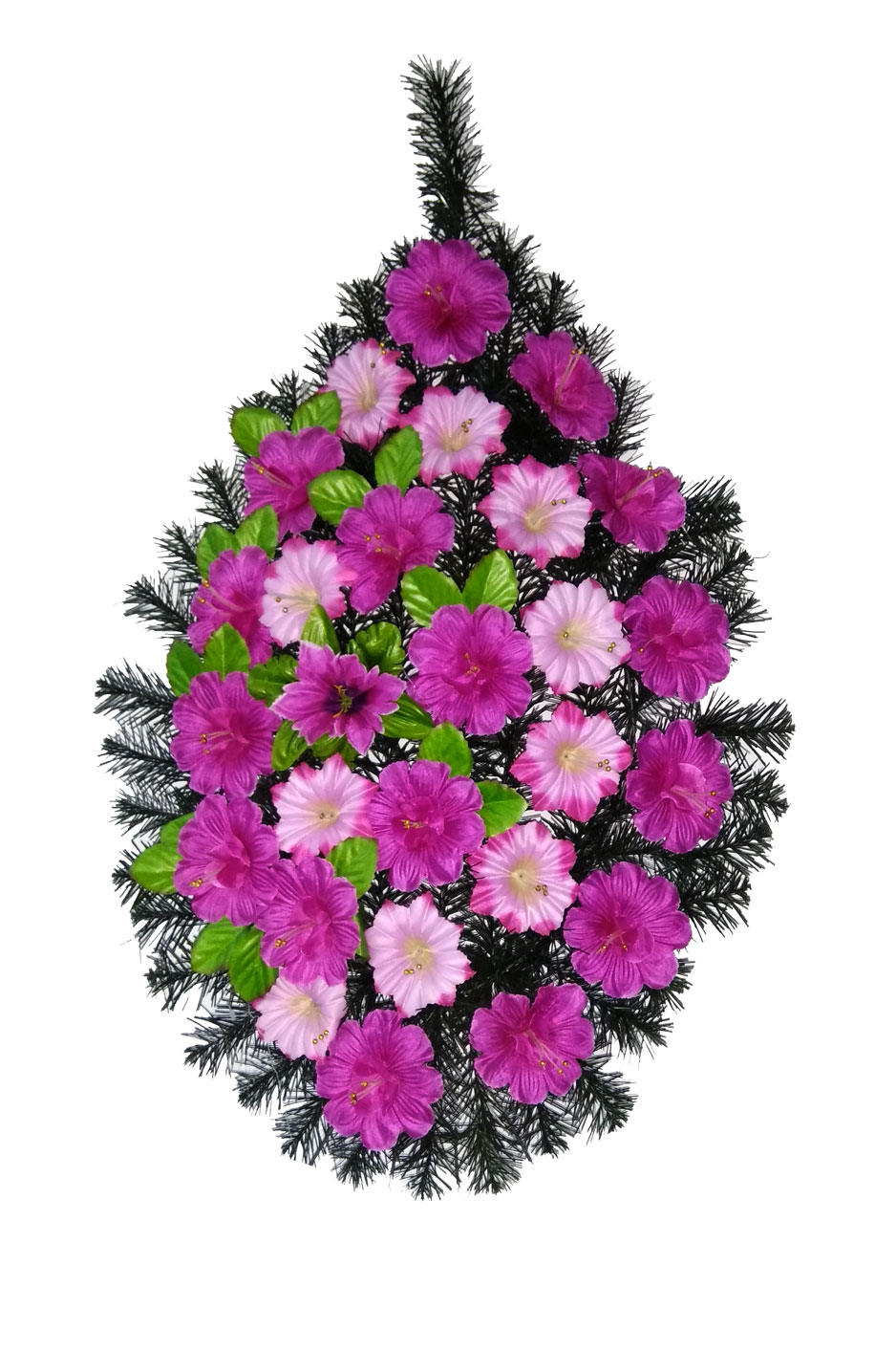 Produsul dat este confecționat din carcas metalic, brad sau pin artificial, flori artificiale, lentă, decor.