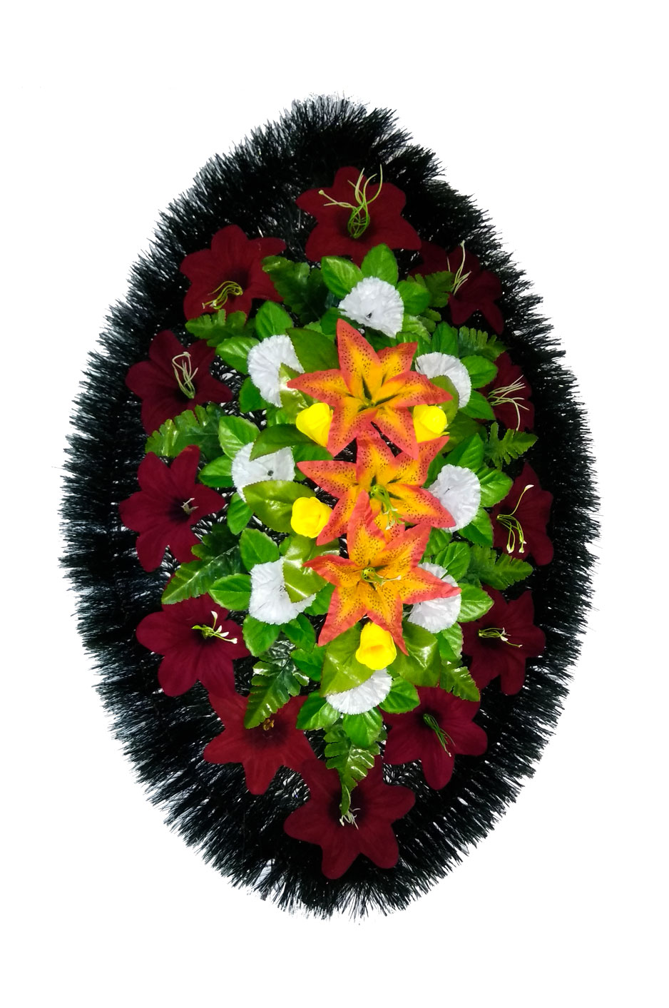 Produsul dat este confecționat din carcas metalic, brad sau pin artificial, flori artificiale, lentă, decor.