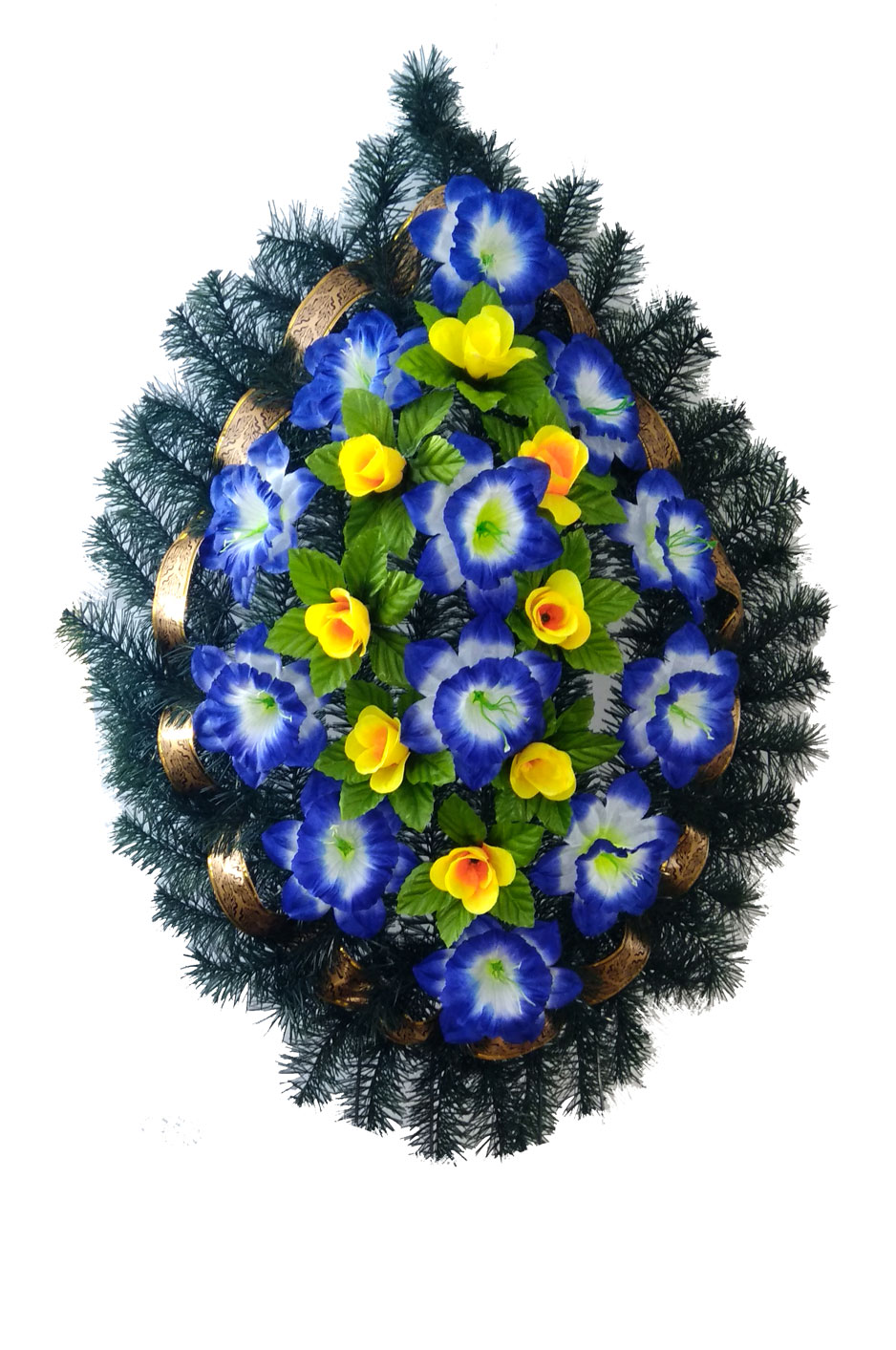 Produsul dat este confecționat din carcas metalic, brad sau pin artificial, flori artificiale, lentă, decor.